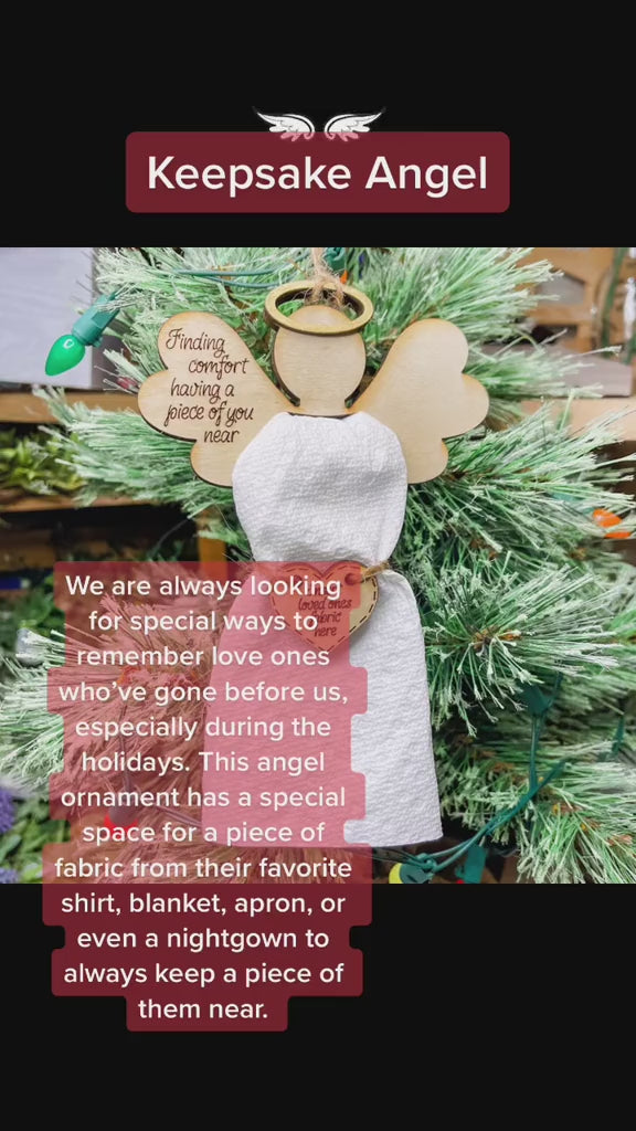 We love finding special ways to remember loved ones especially during the holidays. Our angel ornaments have a special space to tuck fabric from your loved one's favorite shirt, blanket, apron or even a scrap from a wedding gown to keep a piece of them near.
